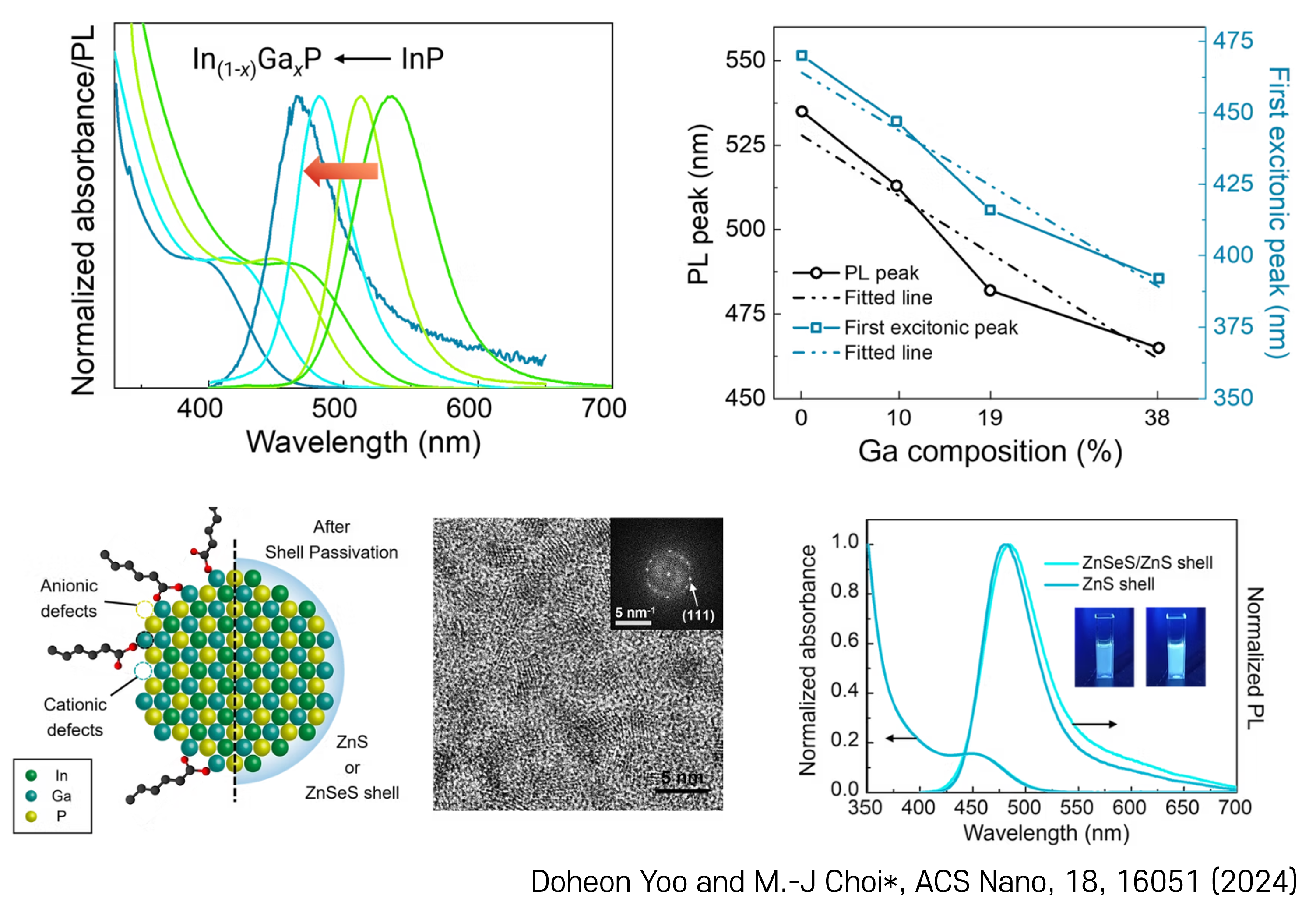 - 우리 연구실에서는 InGaP alloy QD의 합성에 성공하였으며, 이를 통해 청색발광 QD 소재의 개발을 보고한 바 있습니다. 이 소재의 성능을 높이기 위한 다양한 합성 및 표면처리 전략을 수행 중입니다.