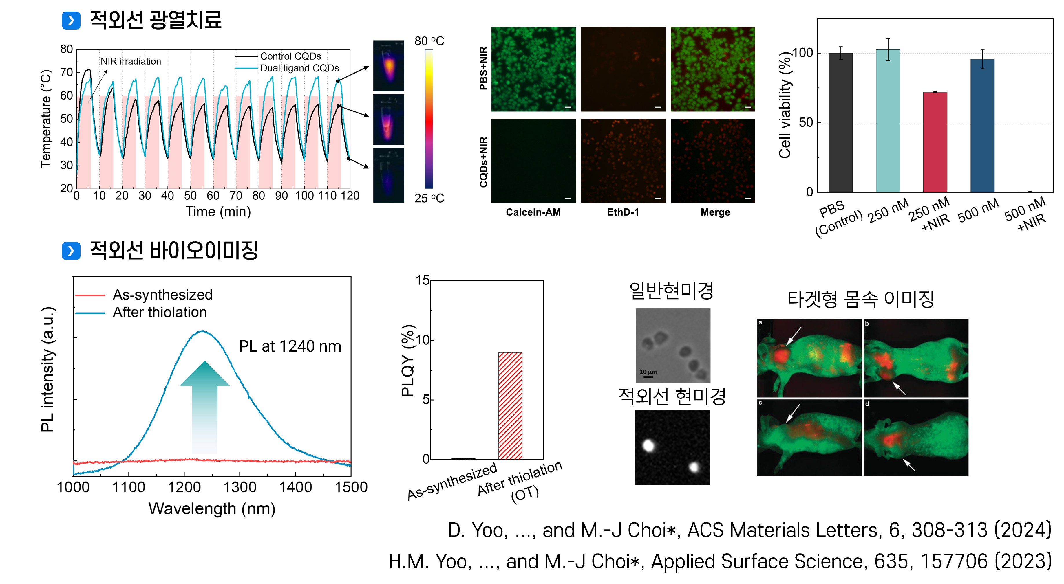 - 또한 우리 연구실은 생체 투과력이 우수한 단파적외선(SWIR) 양자점을 활용하여, 질병의 진단과 치료를 동시에 수행하는 '나노 바이오 플랫폼'을 연구합니다.