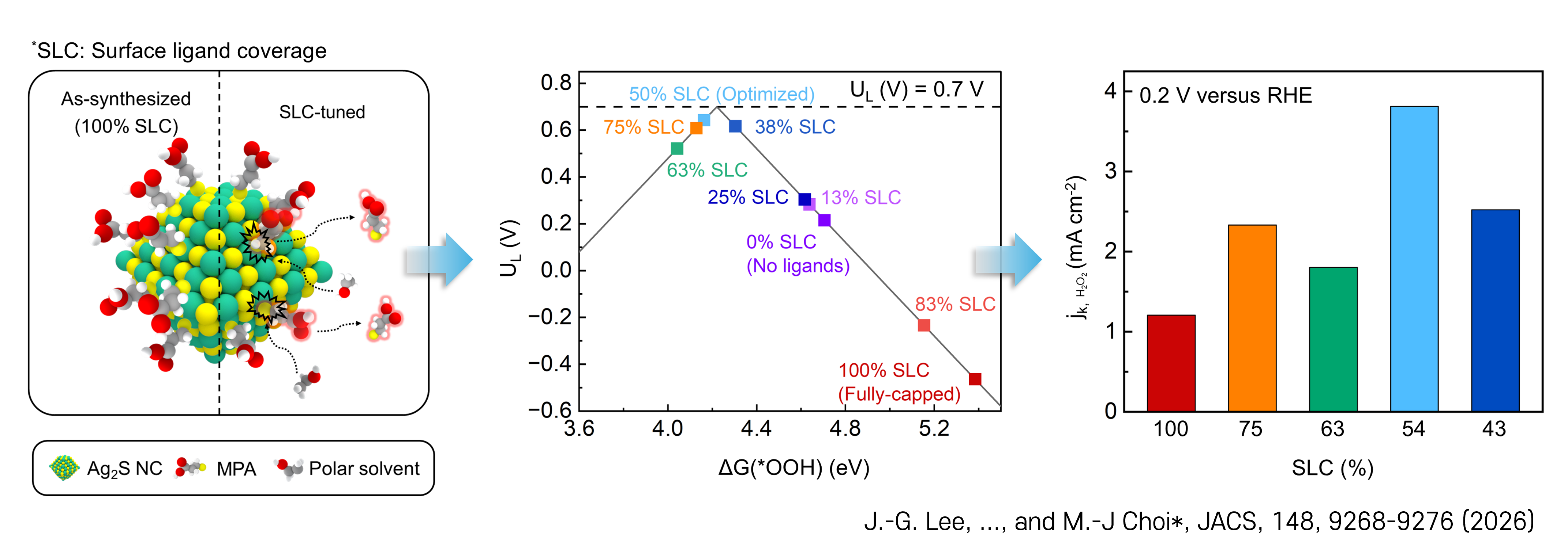 우리 연구실은 전통적인 고에너지 소비형 화학 공정을 대체하여, 전기에너지만으로 과산화수소 등 유용한 화합물을 생산하는 지속 가능한 전기화학 촉매 기술을 연구합니다.
